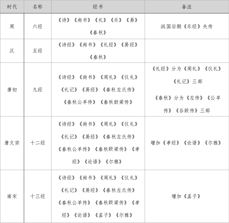 书院最重要的藏书是儒家经典,这是古代科举考试的主要内容。历代多位皇帝都曾赐书院以经史之书,如宋太宗曾将儒家九经赐于白鹿洞书院。儒家典籍后世总称“十三经”,经过从先秦“六经”到南宋“十三经”的漫长演变过程。