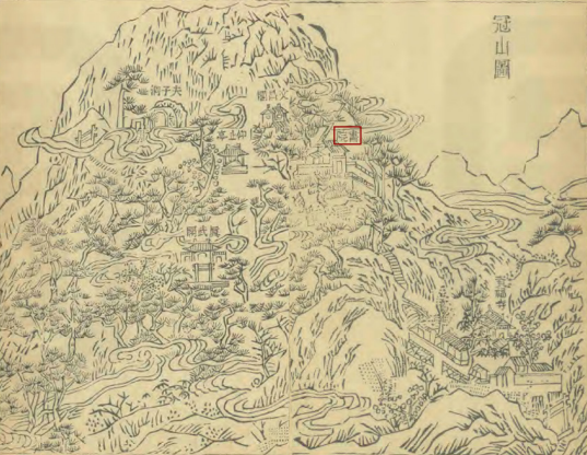 光绪《平定州志》卷首《冠山图》,图中书院即冠山书院。