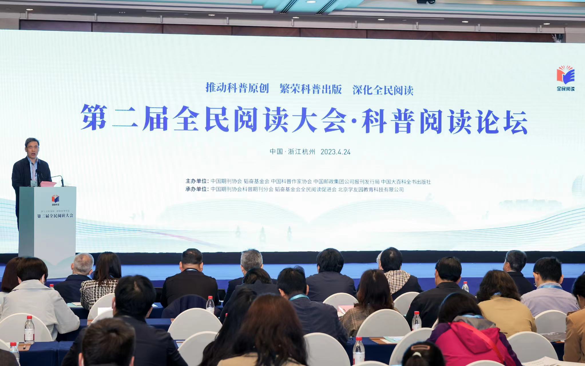 4月24日,由中国期刊协会、韬奋基金会、中国科普作家协会、中国邮政集团公司报刊发行局、中国大百科全书出版社联合主办的第二届全民阅读大会·科普阅读论坛在杭州举行。论坛主题为“推动科普原创,繁荣科普出版,深化全民阅读”。论坛上,“中华优秀科普图书榜”2022年度榜单和“期刊科普原创好作品”推荐活动入选作品名单正式向社会公众发布,2023年少儿报刊阅读季同时启动。