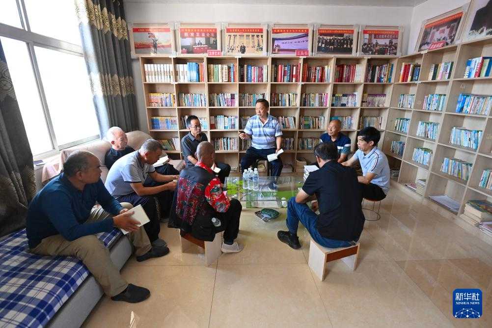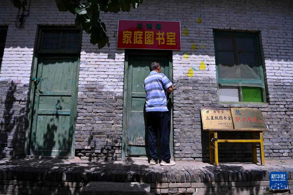 村民在位于山西省永济市卿头镇张坊村的家庭图书馆内看书(9月9日摄)。