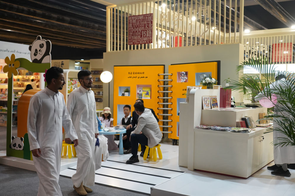 2025年10月2日,在沙特阿拉伯首都利雅得,人们在2025年利雅得国际书展的中国展区交流。