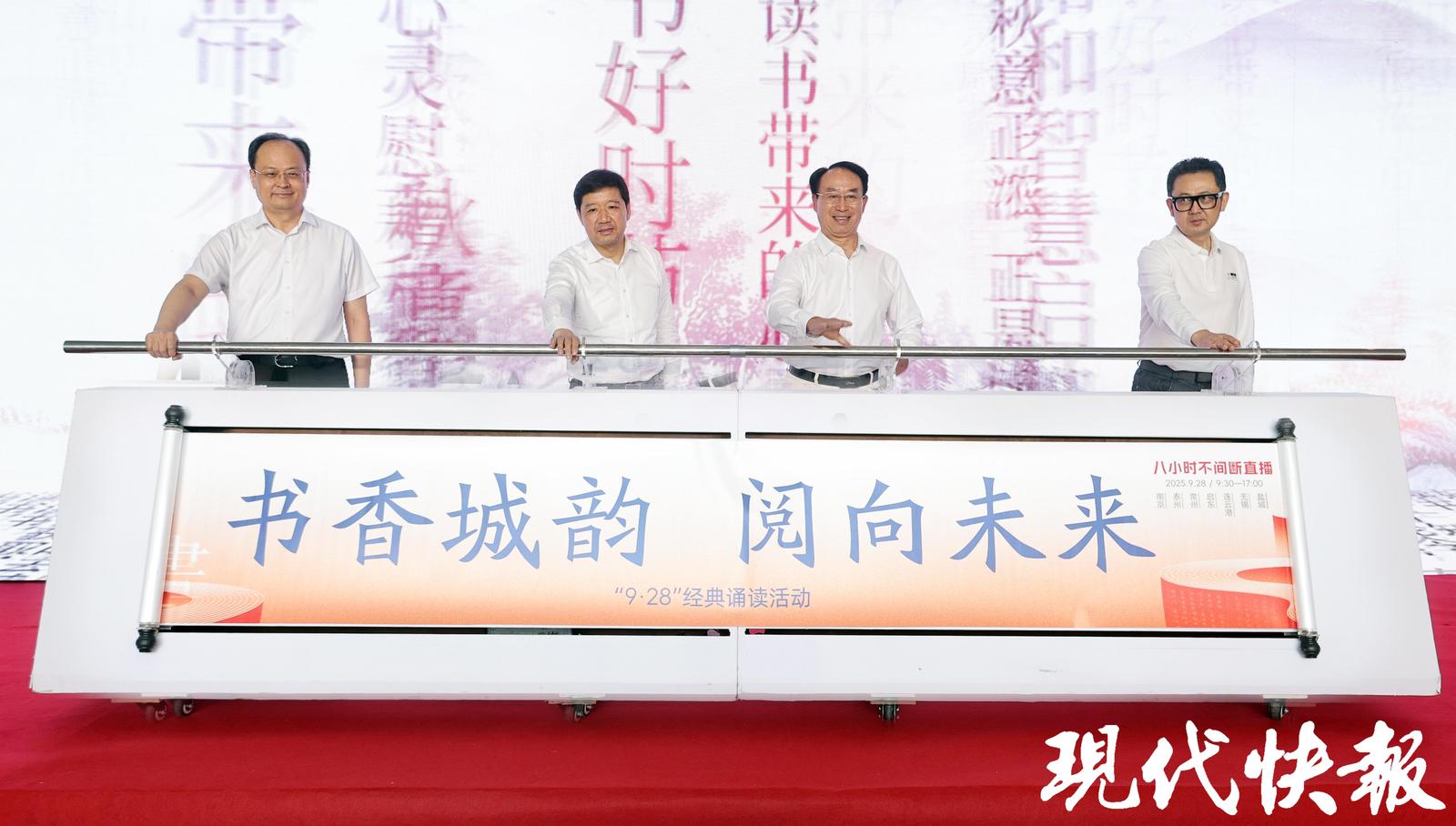 9月28日,“书香城韵 阅向未来”9·28经典诵读活动在江苏南京、泰州、常州、盐城、连云港、无锡、南通等七市八地接力举行,江苏省委宣传部副部长张笑、江苏省全民阅读促进会会长韩松林、凤凰出版传媒集团总经理李贞强、南京市委宣传部常务副部长彭振刚在南京城墙博物馆共同启动活动。
