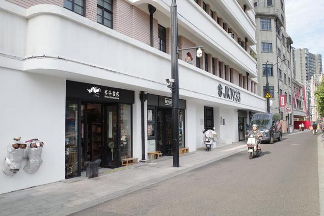从犀牛书店门口向外望去,总能看到一群游客沿着苏州河湾经过,从西向东走向外滩;旁边的艺术画廊与地标建筑也吸引着潮人,用庄见果的话来说,这是很多“浪漫”的游客会选择的路径,也会有很多“浪漫”的读者走进店里。