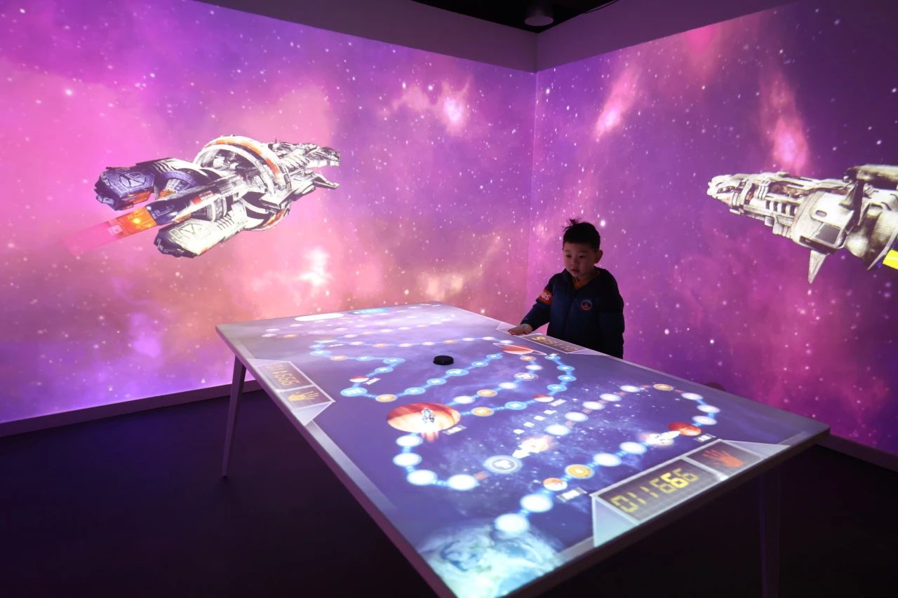 一层东侧,与象外空间相对而设的是智慧阅享空间,分内外两间。在外间,读者能听书、看电子报,还能扫码把电子书带走。在内间,将面向青少年提供多维体验的互动剧本杀,今后会预约开放。