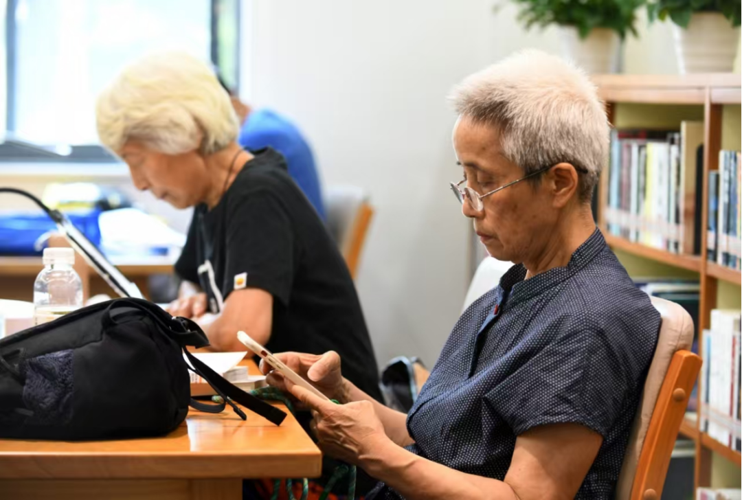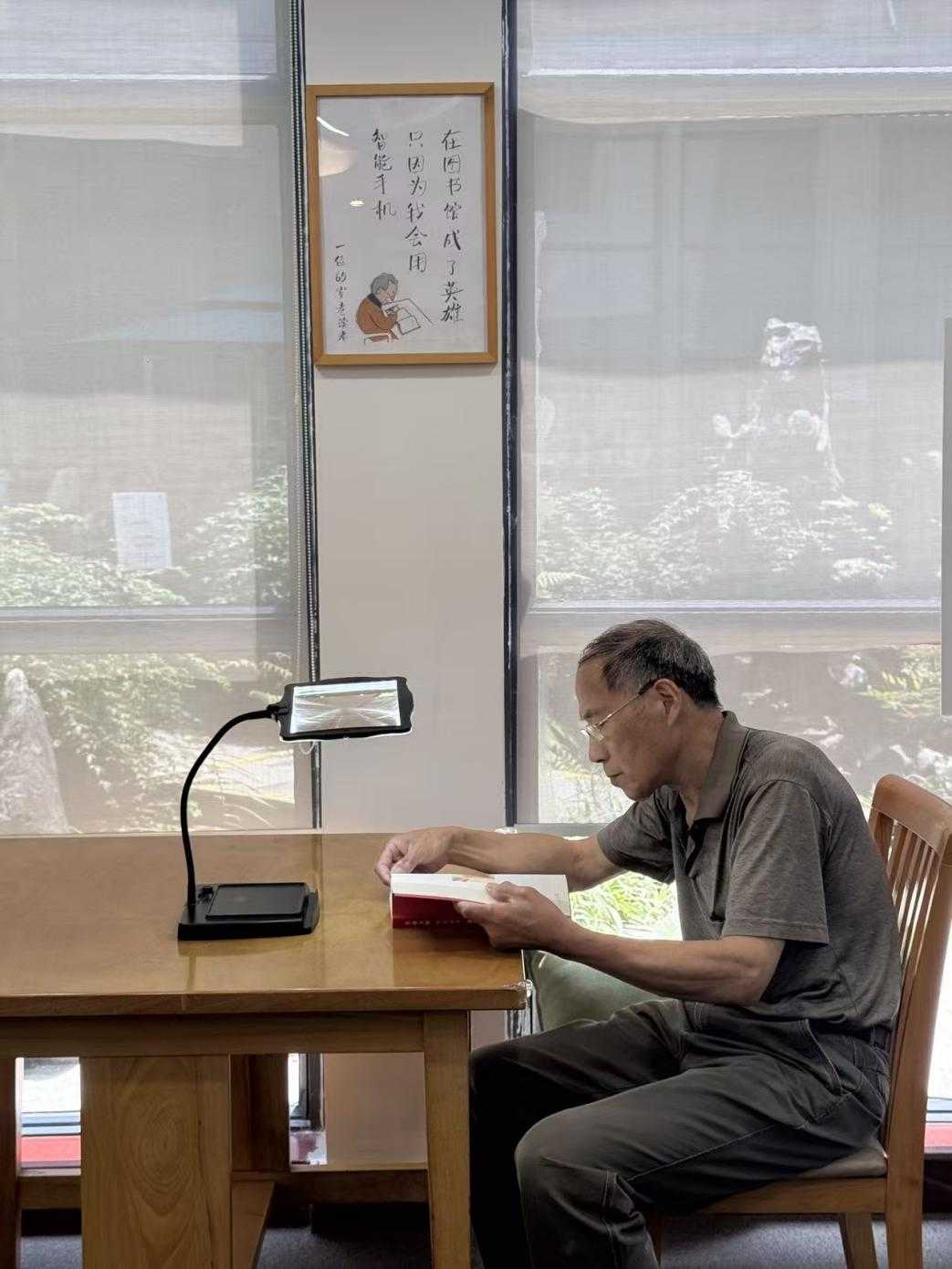 据工作人员介绍,该空间形成从纸质书香到数字阅读的双轨资源体系。针对纸质文献特别设立主题银龄专架,配备大字版图书、报刊及杂志;覆盖健康养生、人文历史、旅游地理等银发热门主题;根据全国老龄办推荐的“百种适老读物”形成“银龄书单”;更创新推出“代际书单”,通过老伙计“书”适圈,汇集退休教师、学者以及活跃在养生、旅游、摄影等各个领域“银龄”达人的精选“私藏”书单,同时依托青年人“书”适圈,收录年轻人热门读物,以此搭建起双向代际文化交流通道,让书籍成为连接两代人的精神纽带。此外,读者可借助智能听书机获取健康养生、历史文化等领域的数字资源,畅享“听得舒心、看得省心、用得顺心”的数字阅读新体验。