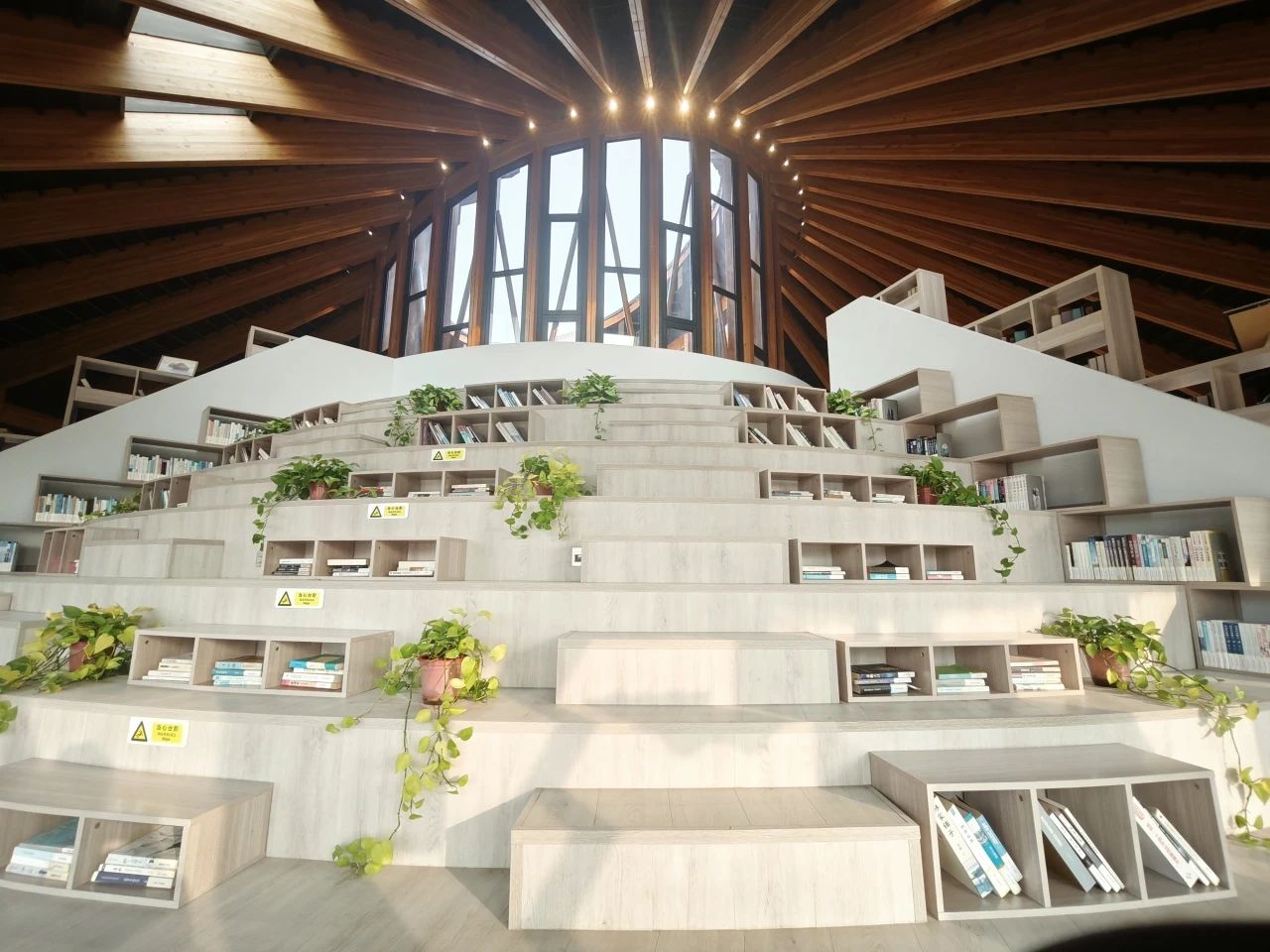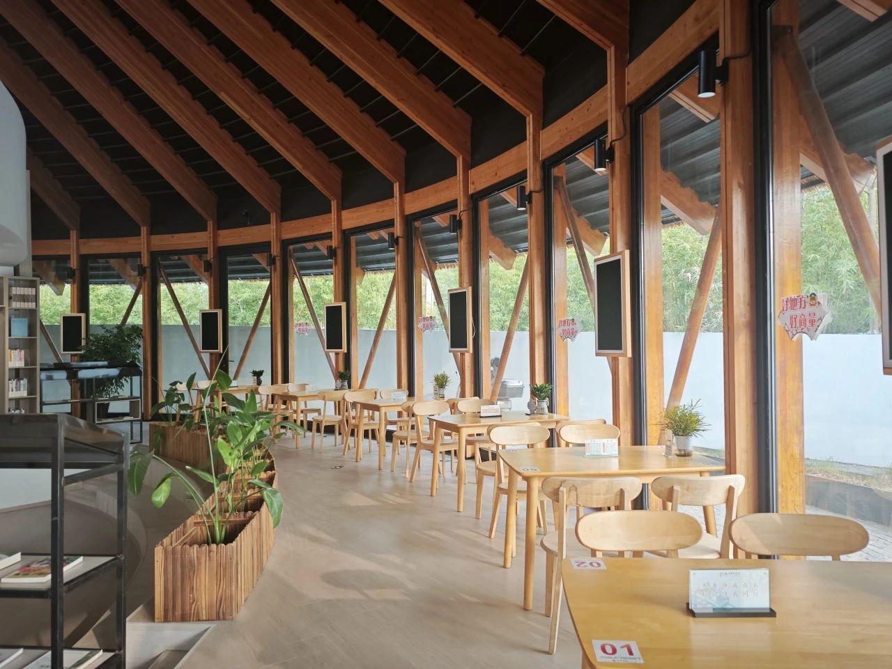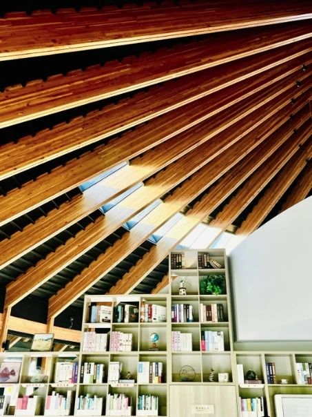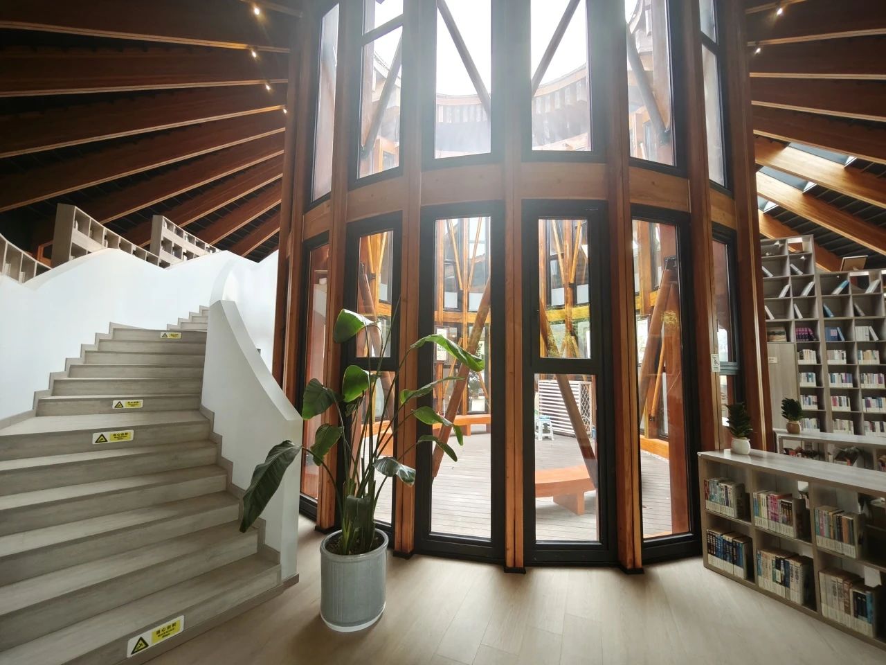 草垛子书房位于江苏省级特色田园乡村沙头镇沙头村,建筑主体采用现代工业化装配式木结构,略带粗糙质感的修剪茅草屋面、线条笔挺的木构框架,再加上虚实分明的落地玻璃和清水混凝土墙,让书房充满了当代乡土风情。书房占地400平方米,藏书3000余册,特别设置“园艺、种植”专题书架,紧贴乡村实际需求。此外,书房还汇聚30余种精选报刊杂志、30万种电子书、32个大型数据库与6个自建数据库。