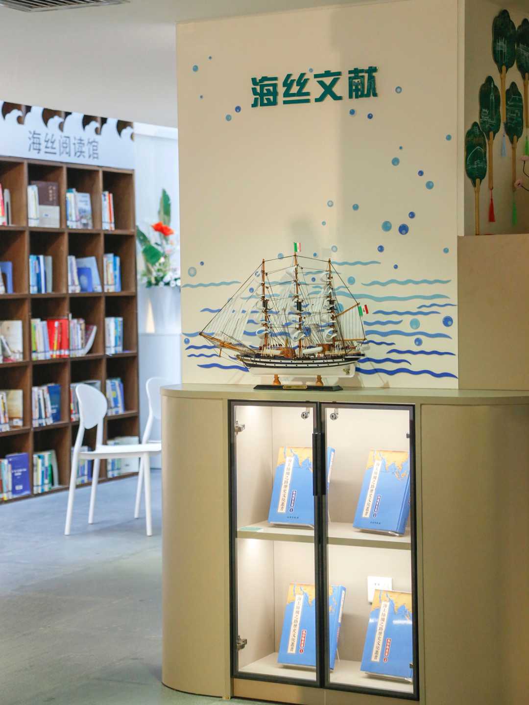 越读吧·海丝阅读馆坐落于广州市越秀区南粤先贤馆内,与海上丝绸之路遗迹——“坡山古渡”遗址比邻而居,是广东省首个海上丝绸之路主题公共图书馆,馆藏图书近3万册,设置了海上丝绸之路文化主题文献专柜、综合文献借阅区、少儿文献借阅区、智慧自习区、休闲阅览区、自助服务区、培训室等服务功能区。