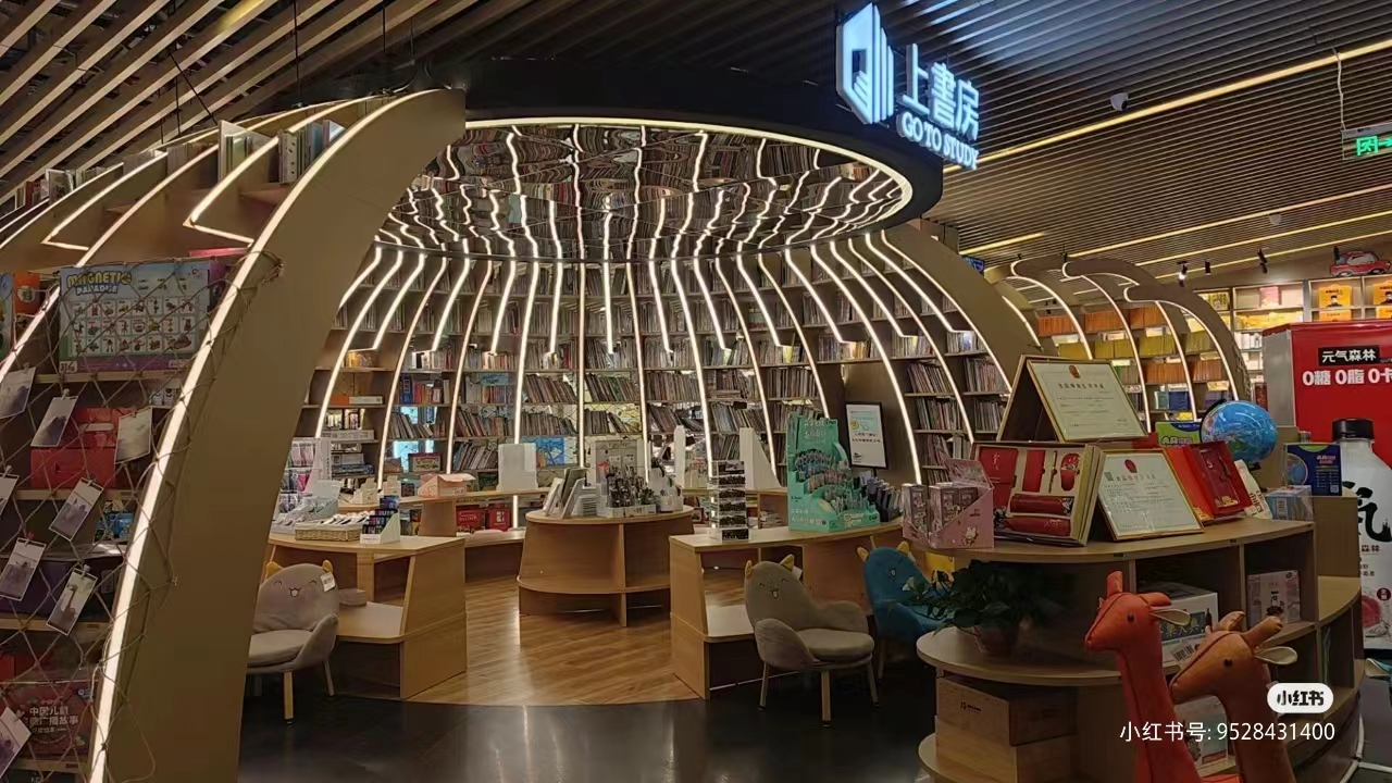 廊坊上书房书店位于壹佰剧院一楼,面积近千平方米,店内藏书3万余册。书店以流沙造型为主旋律,嵌入100余个阅读体验座位,营造人与自然相融合的氛围。店内分为低幼绘本区、青少年阅读区、成人阅读区,党政红色阅读区、文具文创区、读书分享活动区等六个功能区,满足不同读者群体的需求。
