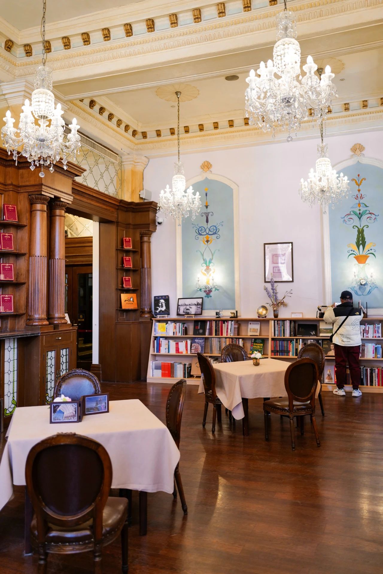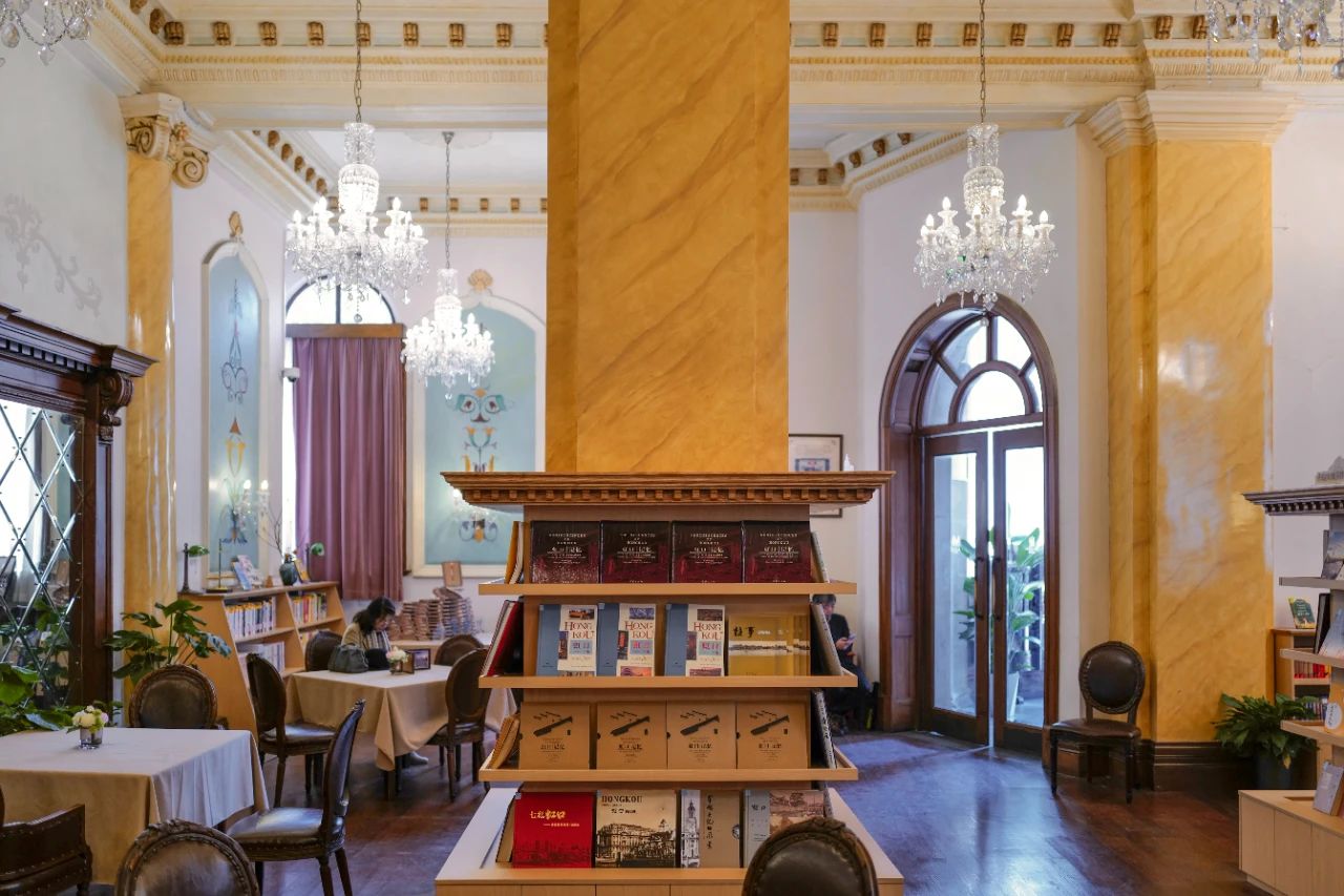 浓郁的新古典主义建筑风格、中国第一盏电灯在这里亮起、中国第一部电话在这里接通……前身为浦江饭店的中国证券博物馆,许多现代化进程中的“第一次”都萌发于此。如今,这里又多了一处“上海早晨”阅览室。水晶吊灯、皮质沙发、圆拱飘窗……阅览室保留着浦江饭店的古韵,室内陈列有历史文博、证券金融及虹口历史文化特色主题的书籍2000余册,还有老式台灯、复古桌椅等年代感物件,挑一本书,在外滩百年建筑里解锁“最美”阅读体验。